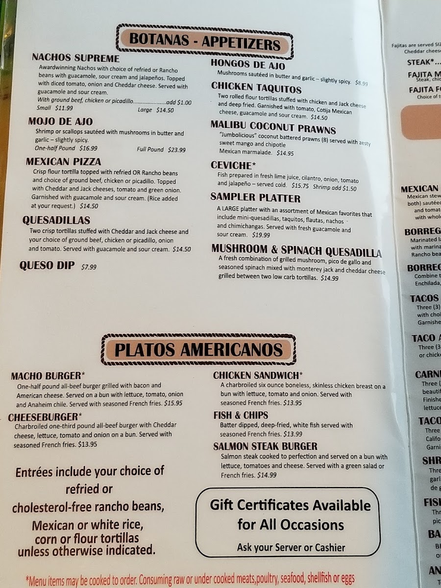 2 Margaritas Family Restaurant Menu